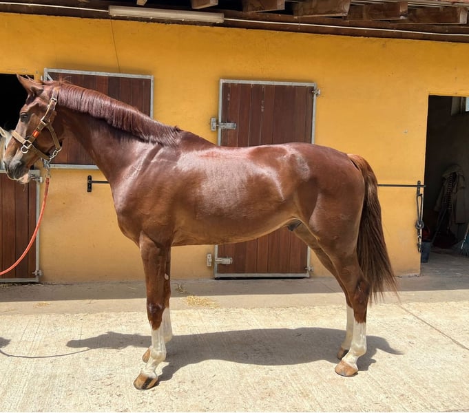 Kastriertes Pferd, mit sehr gutem Charakter und für Amateure geeignet. Sicher, edel und kooperativ, mit Erfahrung im Springen bis 1,30 m. Hervorzuheben ist seine Konstanz im Parcours, gutes Gleichgewicht und leichte Handhabung. Es reagiert gut auf die Hilfen, schaut nicht und hält während des gesamten Ritts ein gleichmäßiges Tempo. Ideal für einen Amateurreiter, der ein zuverlässiges Pferd zum Wettkampf sucht und weiter Fortschritte machen möchte.