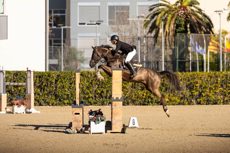 Caballo de salto, perfecto para correr 1'30 y ha corrido algún 1'35. Con mucho corazón, ideal para subir de prueba y coger confianza. Tiene 12 años, y tenemos placas de todo el caballo, y nunca ha dado ningún problema.