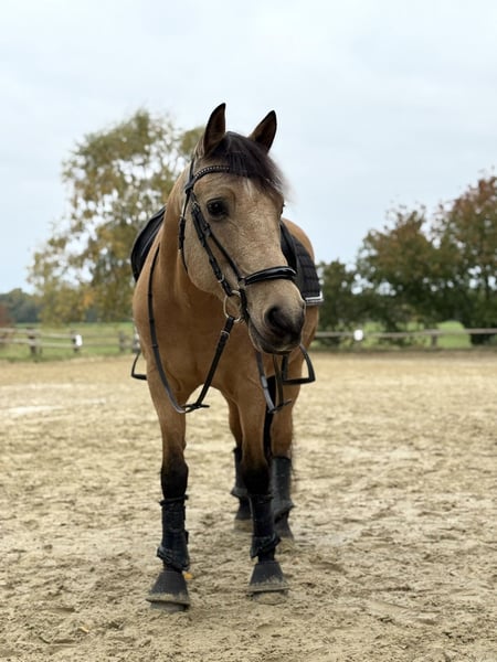 *For inquiries, please contact exclusively at 0171 1177748.* Due to lack of time, this beautiful 14-year-old Spanish gelding with a height of 1.52 meters is for sale. “Dante” is every girl’s dream – stunning, very personable, and well-behaved! The gelding is competing at dressage level A, jumps small fences, is familiar with pole work and trail riding, and enjoys groundwork. Dante can be ridden by less experienced riders (not complete beginners) with side reins, as well as by experienced riders who want to challenge him with new exercises. I can easily see him as a great partner for a mother-child or youth team. He is not mean, but he is not suitable for complete beginners or small children. He also performs tricks such as “giving kisses.” He loves being the center of attention and can be entertained and cuddled for hours. Dante has never been seriously ill with us. He is barefoot, regularly attended by the farrier and dentist, and receives regular vaccinations and deworming. Currently, he is kept in a box with daily turnout on pasture and/or paddock. I could also imagine him in an open stable environment. We wish for Dante to find a 5-star home where he is treated as a family member and loved as much as he is with us. Therefore, priority is given to a suitable home over the price, and some tack and accessories could be included. If you are interested or have questions, and for additional photos and videos, please contact us exclusively by phone or WhatsApp at 0171 1177748. Dante is looking forward to meeting you :)