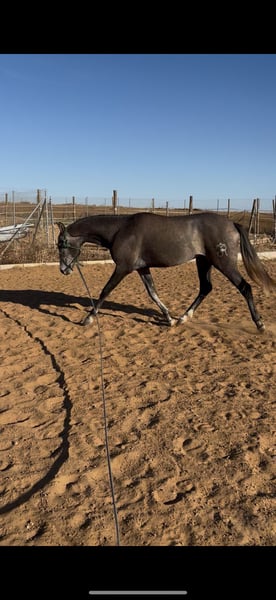 Potro CDE, con 30 meses, noble y dando cuerda con el filete y montura sin ningún tipo de problema. Se deja coger manos y pies. Su padre es un caballo lusitano con hannoveriano siendo este hijo de santano caballo de Javier bolao y su madre una yegua española que viene por tesoro semental de la yeguada militar.