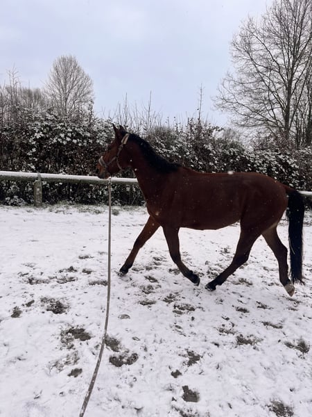 Verkaufe meinen fast 4-jährigen Spanier Wallach. Aktuell ca. 155 cm, wächst noch. Da die Chemie zwischen uns nicht passt und sich mittlerweile meine berufliche Situation geändert hat, gebe ich ihn ab. Er ist lernwillig, motiviert und möchte gefordert werden. Kennt Longieren, Hufschmied, Sattel, Longiergurt, Ausbinder und Trense. Spaziergänge alleine im Gelände sind kein Problem. Stangenarbeit im Trab und Galopp klappt bereits sehr gut. Junges Pferd mit Potenzial, ideal für jemanden, der Spaß an der weiteren Ausbildung hat.
