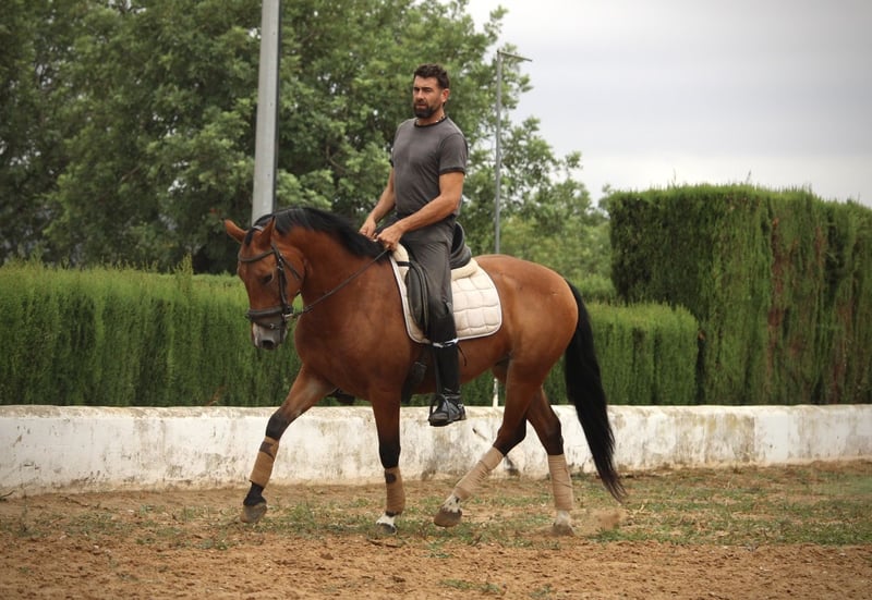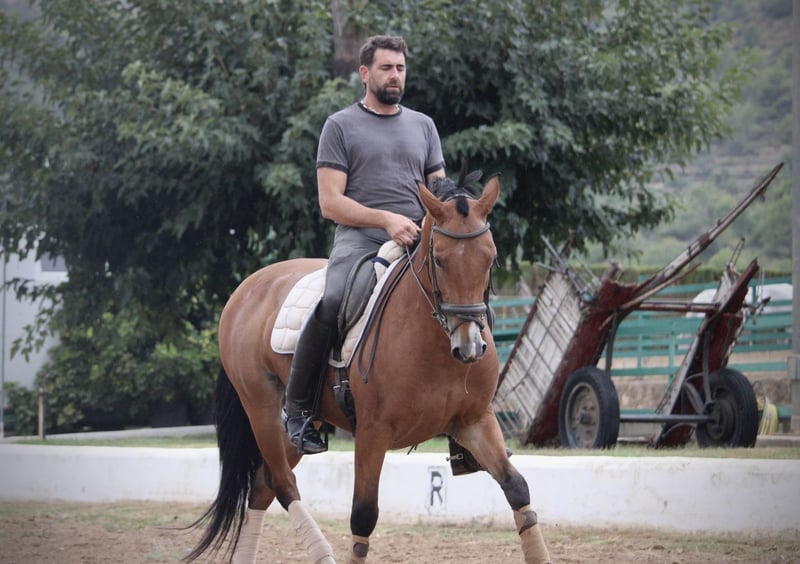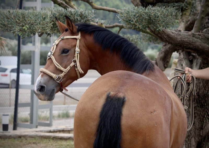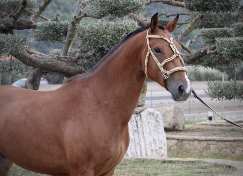This handsome young Cruzado gelding not only impresses with his sweet expression and harmonious appearance, but he also has a lot to offer in the dressage arena. BINGO is well-trained in the basic gaits and masters lateral movements such as leg yields, shoulder-in, and the beginnings of traverses, as well as backing up, transitions from walk to canter, etc. He has also spent a lot of time in the field and is very secure in that environment. BINGO has a friendly, people-oriented character and is a perfect companion for all situations in life. He comes directly from his breeder and has already been trained with us as a young horse. BINGO possesses a Spanish passport.