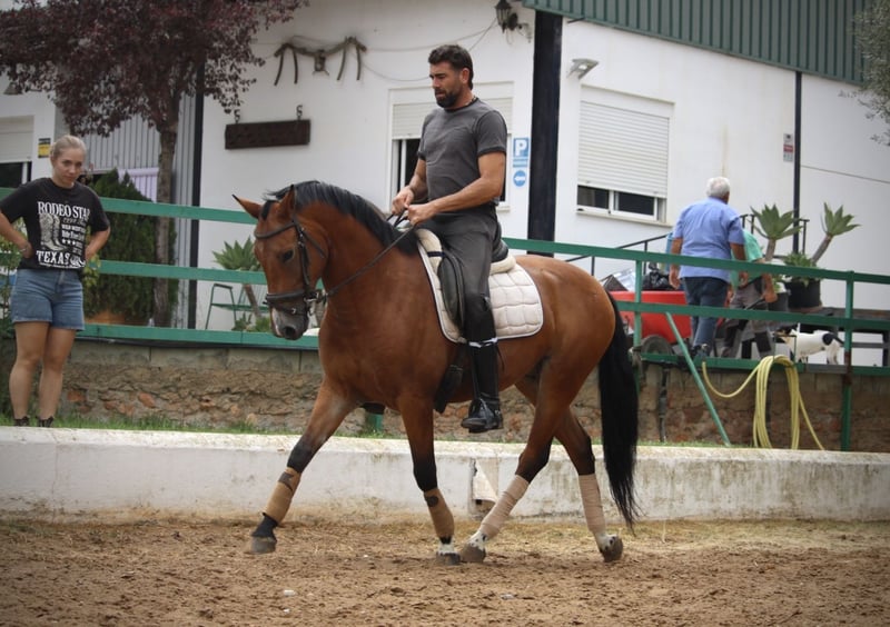 Deze mooie jonge Cruzado-ruin scoort niet alleen met zijn schattige blik en harmonieuze uiterlijk: ook op de dressuurbaan kan hij veel bieden. BINGO is goed gereden in de GGA en beheerst ook zijgangen, schouderbinnenwaarts en de beginselen van traversalen, evenals achterwaarts, stap-galop-overgangen, enzovoort. Hij heeft bovendien veel in het terrein gelopen en is daar zeer veilig. BINGO heeft een vriendelijke, mensgerichte karakter en is een perfecte metgezel voor alle levenssituaties. Hij komt rechtstreeks van zijn fokker en is als jong paard al bij ons opgeleid. BINGO heeft een Spaanse paspoort.