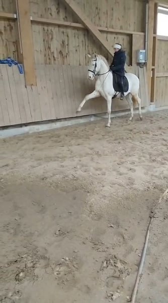 IRON BLUE Exceptional horse, very well trained for equestrian show. Top in dressage with one hand in a simple bit (two-track work), he would make an excellent working equitation horse. Very elegant with just the right amount of blood. Very easy to handle on a daily basis and very affectionate. Known tricks include: - Spanish walk - Exceptional levade and marché - Reverence - Lying down - Sitting Suitable for an experienced amateur rider who can fully utilize his talent. Barefoot Osteo check OK X-rays clear Strictly for a 5-star home