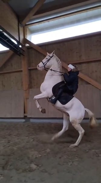 IRON BLUE Cheval exceptionnel, très bien dressé pour le spectacle equestre. Top en dressage a une main en mors simple ( travail de 2 pistes ) il ferai un très bon cheval d'équitation de travail. Très classe avec du juste ce quil faut de sang. Très facile à vivre au quotidien et très attachant. Figures acquises : - pas espagnol - exceptionnel cabré marché -reverence - couché -assis Pour cavalier amateurs confirmé qui saura exploiter sa tonne de talent Pieds ́nus Osteo ok Radios RAS Uniquement pour maison 5*