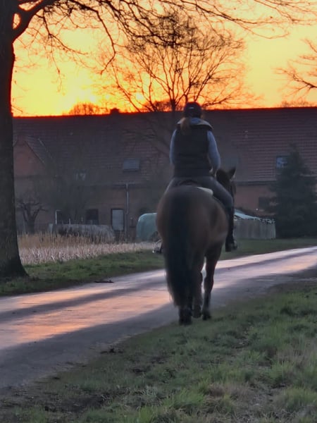 Ich verkaufe meinen 8- jährigen Wallach Novato. Novato hatte leider im September 2025 ein Hufgeschwür (Röntgenbild aus Oktober vorhanden) leider habe ich mich dann selbst im November verletzt. Novato wird jetzt seit Mitte Februar wieder gearbeitet/ bewegt. Deshalb wird er noch als untrainiert & weit unter Wert abgegeben. Er ist von mir schonend ausgebildet worden: - Stockmaß ca 1,63 - E Fertig - ein-& zweispännig gefahren (feizeitmäßig) - kennt regelmäßige Ausritte (alleine und in Begleitung mit zweitem Pferd) - kennt auch schon Sprünge (Gelände & Reitplatz) - absolut Schmiede- & Verladefrom - Tierarzt & Osteopatie auch komplett brav - kinderfreundlich - er hat spanische Papiere - Tetanus & Influenza geimpft - sehr Menschenbezogen Novato wurde im Oktober 2025 vom Pferdedentisten behandelt. Aktuell steht er von Morgens ca 6 Uhr bis Abends 18 Uhr mit einem Shetty auf dem Paddock. Nachts stehen alle im Stall. Ein Großteil von seinem Zubehör (Hufschuhe - Trensen - Sattelschrank - Decken - Fahrgeschirr- Schabracken - Longierzubehör etc.) kann gegen einen Aufpreis mit erworben werden. Gesucht wird ein Mensch mit Herz, Pferdeverstand und Freude an der Arbeit mit einem jungen Pferd, der diesen liebenswerten Wallach weiter fördert. Näheres im Persönlichen Gespräch vor Ort. Seit Mitte Februar wird Novato wieder Trainiert / Bewegt.