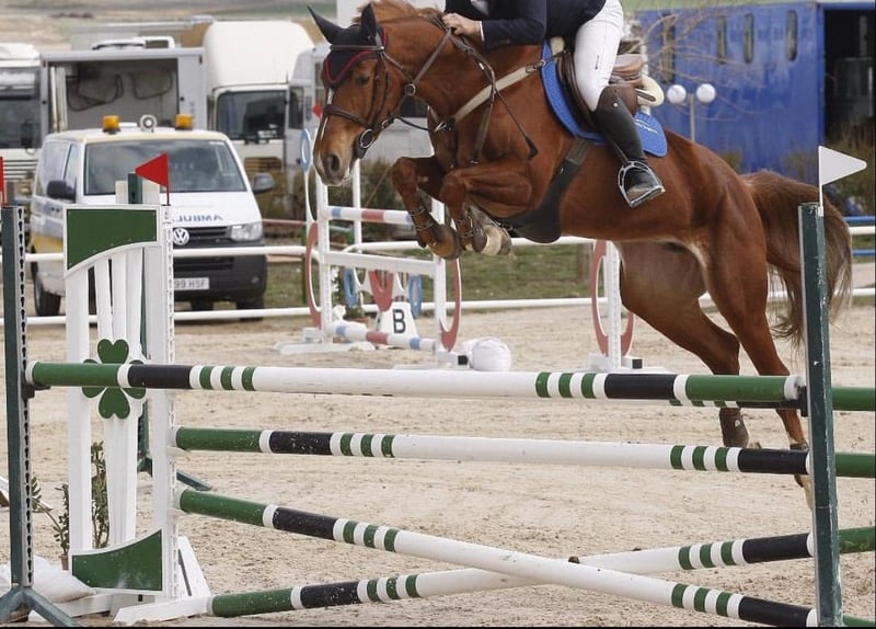 Licytacja koni sportowych z Hiszpanii Od 20 do 22 listopada! Chociaż obecnie sprzedawana jest jako klacz hodowlana, jest użytkowana i startuje w konkursach na poziomie 1,10 m z doświadczonym jeźdźcem! Startowała również w konkursach na poziomie 1,30 m! Nadaje się do sportu! Ma syna o imieniu „ANGER MQ”. Jej ojcem jest „MAJESTIC”, syn „HEARTBREAKER”, który startował w zawodach najwyższej rangi. Obecnie jego potomstwo jest bardzo wysokiej jakości.