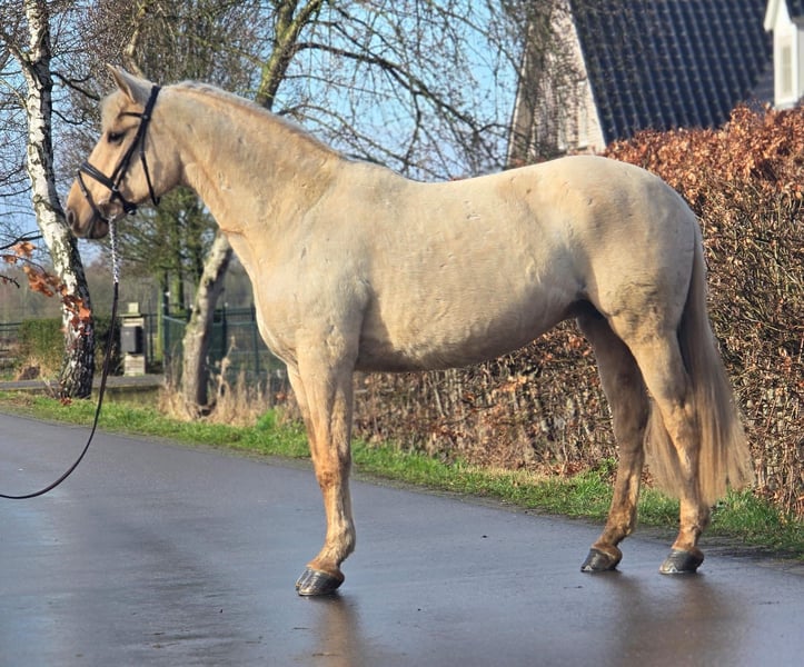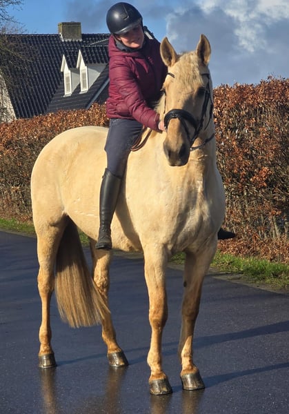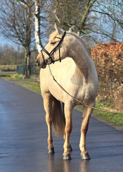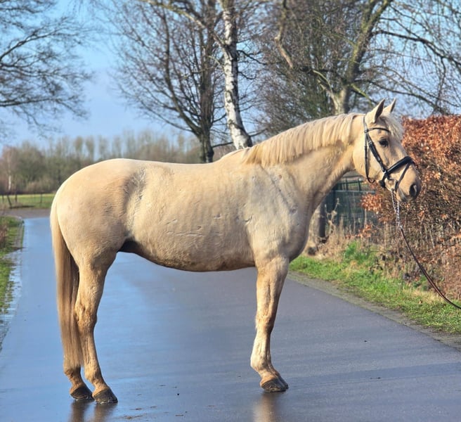✨ Beautiful 12-year-old Palomino mare – Spanish beauty – approx. 1.63 m ✨ For sale: a stunning 12-year-old Palomino mare of Spanish origin, with an approximate height of 1.63 m 🐴💛 This mare is a real eye-catcher with her golden coat and wonderful temperament ✨ She is very gentle and enjoys attention 🤍 She is calm and cooperative during grooming, tacking up, and caring for her 🧽🪮 Under saddle, she is pleasant to ride and reliable 🏇 She is well-behaved on solo rides and remains calm and relaxed in the outdoors 🌳🌾 Perfect for someone who enjoys riding independently 😊 Additionally, she is: ✔ Calm at the blacksmith 🔨 ✔ Well-behaved in the trailer 🚛 ✔ Honest and eager to work 💪 In short: a sweet, dependable mare suitable for someone looking for a lovely recreational partner with presence and a golden character 🌟🐎 For more information or serious inquiries, please send a message 📩😊