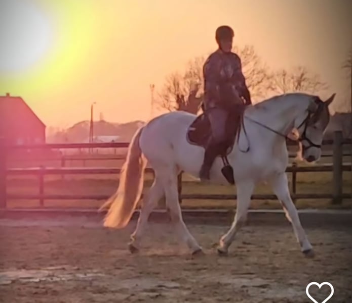 Aus gesundheitlichen Gründen meiner Seite biete ich hier meine Stute zum Verkauf an. Ich werde ihr durch meine Einschränkungen reiterlich nicht mehr gerecht. Urania möchte gern gefallen und regelmäßig gearbeitet werden. Sie ist vom Wesen her eher schüchtern, rangniedrig und schreckhaft. Sie ist kein Kinder/ Anfänger Pferd. Wenn sie sich erschreckt wirft sie den Kopf hoch und macht schon mal einen Sprung zur seite. Enge ist auch nicht ihr Ding. So mag sie es nicht gern wenn zu viele Reiter in der Halle/Platz sind und zu dicht an ihr vorbei reiten. Bodenarbeit findet sie super. So zirkelt sie gern frei neben mir her. Schritt, Trab und so langsam kommt auch der Galopp. Ausreiten in der Gruppe ist kein Problem. Allein kann ich nichts zu sagen da ich das nicht mache. Unter der Schweifrübe hat sie drei kleine Melanome die sie bisher aber nicht beeinträchtigen. Bei Intetesse schreiben sie mich gern über whats app oder e mail an da ich nicht immer ans Telefon gehen kann. Nach erstem Kontakt rufe ich sehr gern zurück.