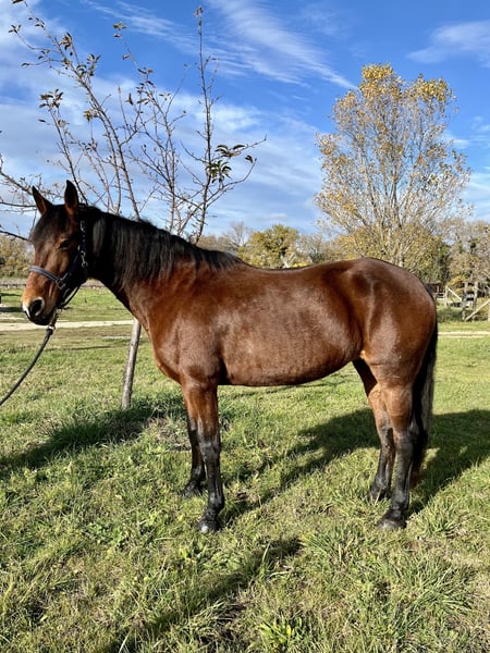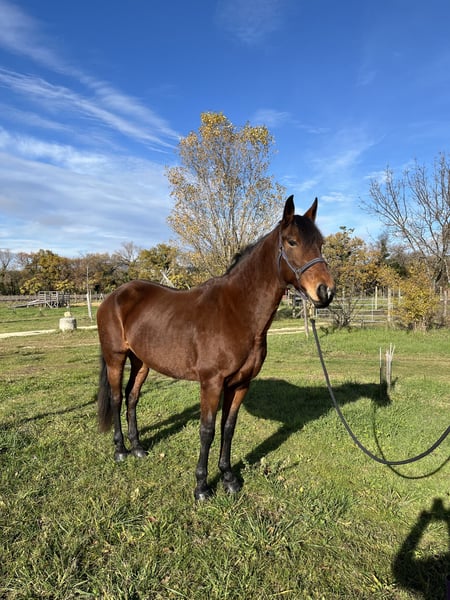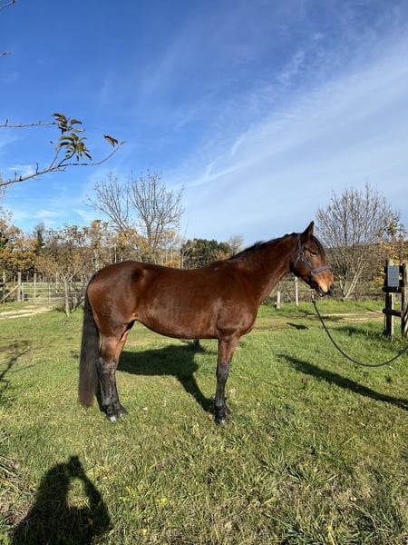À vendre – Jument ONC espagnole, 15 ans, Baie, environ 1m60 idéale loisir, douce et proche de l’humain Elle a passé une grande partie de sa vie en élevage et a pouliné régulièrement. Depuis un mois, elle reprend doucement le travail, en longe et monté tranquillement, et montre une très bonne volonté. (redébourrage) ✔️ Caractère Très douce, Respectueuse à pied Bonne énergie sans excès à pied, reste tres verte dans le travail monté, qui se regleras au fur et à mesure du travail efffectué. Apprend vite et aime faire plaisir ✔️ Au travail Reprise progressive depuis 1 mois : pas/trot/ galop Trés bonne bases en travail a pied (longe, longue renes, un peu de liberté) Le travail monté est en cours d'évolution À l’écoute, volontaire Idéale pour une personne qui veut construire sereinement une relation Préférable pour du loisir, balade, léger travail en carrière ✔️ Santé & mode de vie Jamais malade, suit bien ses soins Pieds ferrée des antérieurs Dentiste / ostéo / vaccins à jour Vit au pré ✔️ Idéale pour Cavalier calme et patient Reprise en douceur, relationnel, loisirs Personne cherchant une jument pour évoluer sans pression et établir une vrai connexion de confiance 📍 Localisation : Drôme 💰 Prix : 4000 📞 Contact : 06 89 40 65 28