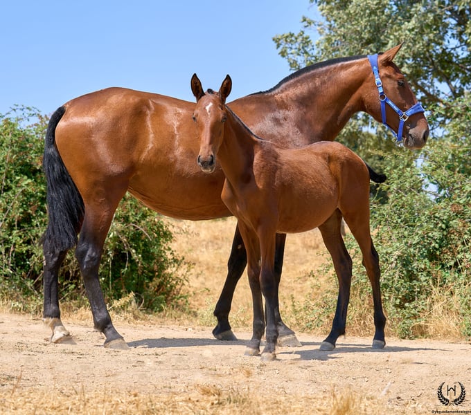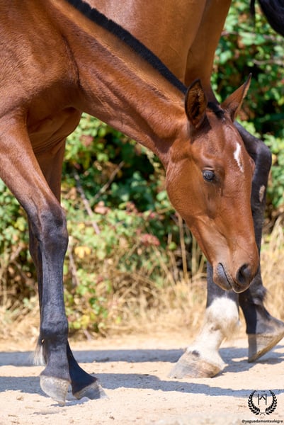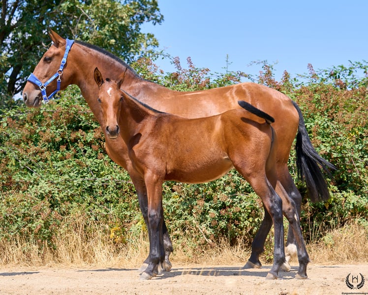 🐴 Giralda is a bay CDE filly with a crescent-shaped marking on her forehead 🌜. She is the sweetest and most affectionate of the crop and enjoys human contact. Born on 15 May, very tall, harmonious, with an ideal build for sport and riding. ♀️ Dam: SEVILLANA CCXI Bay PRE mare, 1.75 m, 100% Cárdenas, registered as a breeding mare with ANCADES. She stands out for her nobility, power, balance and superior movement, and is also confirmed as a riding mare. She transmits quality in everything. Giralda is her first foal. 🧬 Elite pedigree On the sire line appears Fuego de Cárdenas, a PRE legend and a key figure in classical dressage alongside Juan Manuel Muñoz Díaz, known as the “King of Hearts”. 🏅 Achievements of Fuego de Cárdenas: • Spanish National Champion (2008) • Olympic Games Beijing 2008 (6th) and London 2012 (10th – Diploma) • Historic Kür at the 2010 WEG in Kentucky • International CDI victories (Saumur, Wiesbaden) • Young Recommended and Qualified Breeding Stallion ANCCE Also in this line is Utrerano VII, one of the most influential stallions of modern PRE breeding and sire of Fuego de Cárdenas. 🏆 Milestones of Utrerano VII: • Qualified, Improving and Elite Breeding Stallion • Great transmitter of character, scope, strength and elegance • Sire of numerous international PRE horses • Essential genetic foundation of today’s sport PRE On the dam line appears LEGO, legendary stallion of the Yeguada Militar: • Qualified and Improving Breeding Stallion ANCCE ♂️ Sire: Gallo-Spirit (CDE) Recognised stallion, renowned for passing on beauty, nobility, refinement, ease of training and great willingness to work. 🩺 Health guaranteed Any veterinary examination accepted. Raised in freedom, socialised and well balanced within the herd. Dewormed in November. ✈️ National and international transport We work with the best professional equine transport companies. Quotation without obligation. 📙 Documentation: Official ANCADES Studbook / Main CDE Register. 📲 Contact: WhatsApp: +34 639 522 420 Instagram: @yeguadamontealegre 📸 Photography: @almarevisual
