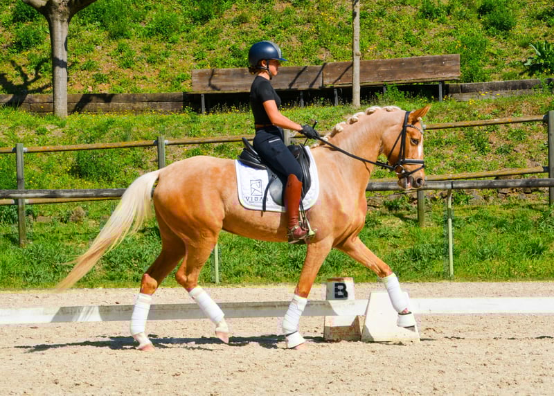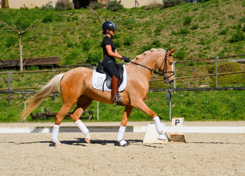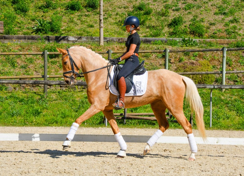 Jument de palomino (PRE / KWPN), idéale pour la compétition