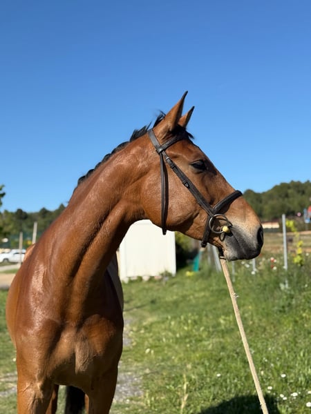Formentera VEM Super klacz CDE na sprzedaż z bezpośrednimi pochodzeniem od Ivettus del Maset. Startuje w konkursach na wysokości 1,10 m, a w treningu w domu na 1,20 m. To klacz, która emanuje pewnością i zaufaniem przed skokiem, zawsze utrzymując się w górze. Łatwa w prowadzeniu zarówno na ziemi, jak i pod siodłem, co czyni ją odpowiednią dla każdego jeźdźca. Wychodzi na pole zarówno sama, jak i z innymi końmi. Klacz do nauki podnoszenia poziomu i osiągania dobrych wyników. Płyty dostępne.