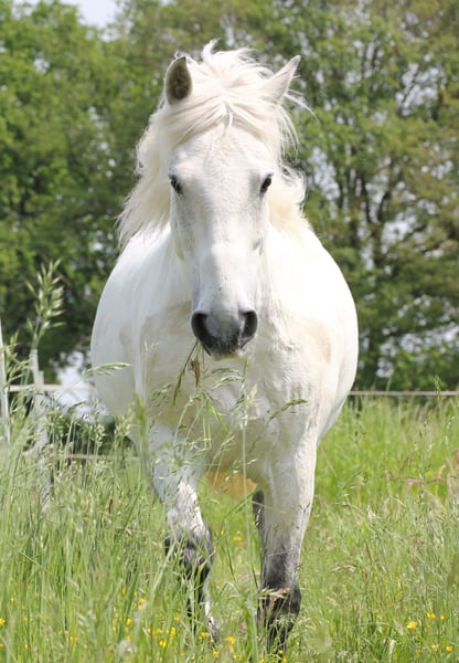 Poney hongrois, utilisé en attelage et à l'équitation, mesurant 1,36 m, de forte constitution