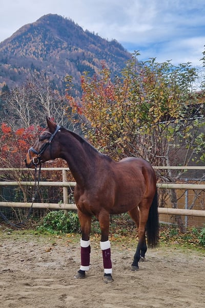 Wolkentanz is an exceptionally handsome dark bay gelding (Hungarian sport horse, born in 2014, approximately 16.1 hh). He has a full pedigree and comes from a loving, well-maintained home where he has been excellently cared for over the past five years. 🏅 Training & Achievements - Trained up to Prix St. Georges level in dressage - Successfully competed in shows - Consistently placed among the top 5 in the Styrian Young Horse Cup in recent years - Enjoys jumping confidently and safely up to 1 meter, though he has not been further trained for higher jumps – potential for more is present Wolkentanz is a versatile, motivated horse that brings enjoyment both in the arena and over fences. 💛 Character Wolkentanz is an extremely well-behaved, resilient, and reliable horse who remains calm even in stressful situations. He: - Forgives rider errors - Moves easily both alone and in a group, including hacking out - Is not spooky and very balanced - His calm nature makes him suitable for re-entrants and less experienced riders 🩺 Health & Care - Healthy, no vices - Regularly vaccinated and dewormed - Fully shod on all four hooves - From the best home with optimal care - Transport can be arranged upon request - His tack can be purchased separately at an additional cost 🧡 Reason for Sale Wolkentanz is being sold only due to the owner’s decision to retire from riding. He will only be sold to a caring new owner who will continue to give him the same loving care as before. 📞 Contact & Further Information Viewing and trial rides can be arranged at any time by appointment. Please contact us for more details, photos, or videos.