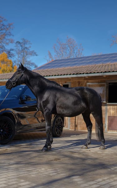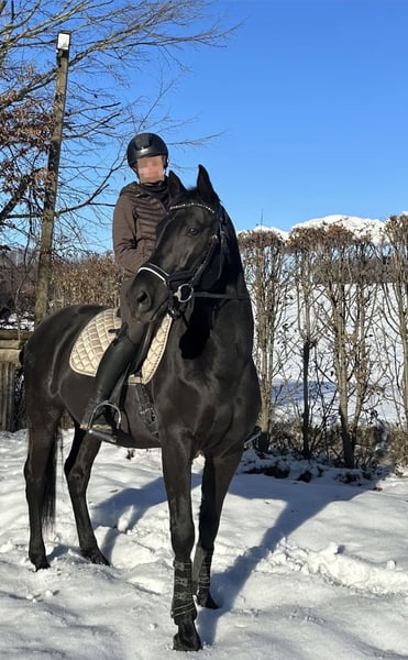 Chocolat Mi Amer – a horse with character A well-behaved 13-year-old gelding who impresses with his willingness to work. He is currently being ridden at A-level with room for further development. He also enjoys jumping. Work-oriented and eager to please, but he can also test boundaries. Not a push-over. Additionally, he is a therapy horse and loves children. Farrier- and loading-trustworthy, no bucking or rearing, well-behaved at competitions. Only available to the best of hands ❤️