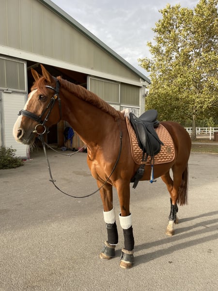 Ich verkaufe meinen lieben Fuchs-Wallach an Bestplatz - Platz vor Preis In der Dressur ist er auf dem Ausbildungsstand LP, wurde bis LM am Turnier vorgestellt. Im Springen wurde er bis 95 cm vorgestellt. Vom Boden aus ist er absolut brav, lieb und verschmust. Er ist schmiede- und verladefromm. Er ist ein sensibler, eher ängstlicher Typ, dabei aber nicht böse – er steigt nicht und geht auch nicht durch. Mit einem ruhigen, sicheren Reiter, der ihm Vertrauen gibt, ist er ein wunderbarer Partner, ich kann ihn mir auch für Anfänger vorstellen, solange diese selber keine Angstreiter sind. Er liebt das Ausreiten. Daher wünsche ich mir jemanden der dies genauso liebt wie er und in der Dressur vielleicht noch etwas dazu lernen will. Denn er zeigt gerne was er kann solange er dies nicht jeden Tag machen muss ;) Aufgrund seiner sensiblen Art waren wir am Springturnier nicht immer erfolgreich. Jedoch liebt er das Springen zu Hause, so lang es auf Reiternadel Niveau bleibt. Ich wünsche mir für ihn einen Platz, wo er geliebt wird, regelmäßig ins Gelände darf und weiterhin gefördert wird, ohne Turnierdruck. Absolut Platz vor Preis