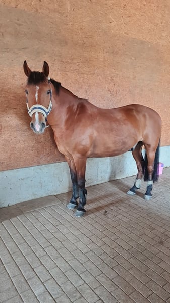 Verkaufe ungarisches Sportpferd – vielseitiger Freizeitwallach Zum Verkauf steht ein gut ausgebildeter ungarischer Wallach, geboren im Jahr 2008. Mit seinem braunen Fell und einer Schulterhöhe von 152 cm ist er ein kompakter und charmant wirkender Begleiter für den Freizeitbereich. Der Wallach ist gut geritten und zeigt sich im Umgang stets freundlich und kooperativ. Er verfügt über eine solide Grundausbildung und ist feizeitmäßig geritten. Er ist nicht für Änfänger geeignet, da er mehr temperamt mit sich bringt und man sich durchsetzten können muss. Es macht sehr viel Spaß mit ihm, wenn man mit diesem Temprament umgehen kann. Er ist verladesicher und kennt auch fremde Plätze. Eine kleine Macke von ihm ist, dass er Angst vor Kühen hat. Was sich allerdings etwas gelegt hat seit Kühe neben seiner Koppel stehen. Gesamt ist er ein tolles Freizeitpferd mit dem man lange Ausritte genießen kann. Formás überzeugt durch sein Ehrgeiz neue Dinge zu lernen und mit dem Mensch zu arbeiten. Sein Ingegenkommen unter dem Sattel mit den richteng Hilfen lässt ihn grazu leichtfüssig werden. Er ist gesund, regelmäßig entwurmt und wurde regelmäßig tierärztlich betreut. Bei Interesse oder weiteren Fragen stehe ich gerne zur Verfügung. Dieses vielseitige Freizeitpferd wartet auf einen neuen, liebevollen Besitzer, der seine Qualitäten zu schätzen weiß.