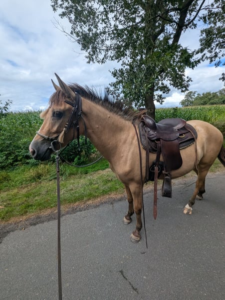 **Sales Advertisement: Hungarian Sport Pony** For sale is a beautiful Hungarian pony mare born in 2021, according to her passport. However, her teeth indicate that she is 3 years old. With a height of 143 cm, she is ideal for leisure and hobby riders. But she is still fully growing. Püppi is being worked in horsemanship. She is not easily spooked, whether it's tarps, flags, etc. We also take her for walks alone, and she does great. She is accustomed to rider weight, but due to her growth, I would recommend waiting until next spring for proper riding. She is in a herd and is very well-behaved there. A great pony to train yourself.