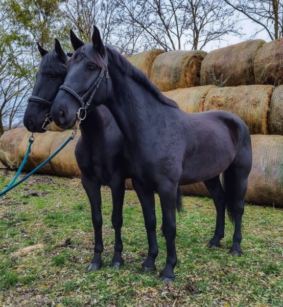 Direkt vom Züchter – aufgrund von Platzmangel stehen die auf den Bildern gezeigten Pferde zum Verkauf: eine 3,5-jährige Stute mit einer Widerristhöhe von 167 cm sowie ein 4,5-jähriger Wallach mit einer Widerristhöhe von 169 cm. Die Pferde sind Vollgeschwister und gehören zur Rasse Ungarisches Warmblut. Ihre Abstammung ist hervorragend: Eltern und Großeltern waren äußerst erfolgreich im Fahrsport, in der Dressur sowie in der Vielseitigkeit. Beide Pferde verfügen rassetypisch über außergewöhnliche geistige und körperliche Eigenschaften: -Ausgezeichneter Charakter: ausgeglichen, ruhig, zuverlässig und freundlich, mit schneller Auffassungsgabe und sehr guter Kooperationsbereitschaft. -Hervorragender Körperbau: korrekt proportioniert, mit gut entwickelter Muskulatur. -Außergewöhnliche Bewegungen: ausdrucksstark, elastisch, mit natürlicher Balance und guter Versammlung. Der Trab ist leicht und harmonisch, der Galopp rund und rhythmisch. Alle drei Grundgangarten sind klar, korrekt und taktrein. -Gesundheitszustand ausgezeichnet: beide Pferde sind in jeder Hinsicht vollkommen gesund. Sie verfügen über aktuelle, offizielle tierärztliche Untersuchungsunterlagen. -Frei von Krankheiten und Verletzungen, keine bekannten gesundheitlichen Probleme. Keine schlechten Angewohnheiten. Für ihr Alter gut ausgebildet: sie kennen die Grundlagen des Reitens sowie des Fahrens. -Leicht zu reiten: werden regelmäßig im Gelände sowie im Stadtverkehr geritten, stets zuverlässig und ruhig. -Im Fahrsport arbeiten sie hervorragend zusammen: ein harmonisches, gut versammeltes und ausgeglichenes Gespann. Sie bewegen sich schön gemeinsam und reagieren aufmerksam auf die Anweisungen des Fahrers. -Sehr nervenstark und mutig: weder im Gelände noch im Straßenverkehr schreckhaft, immer ruhig und ausgeglichen. Die Pferde sind sowohl gemeinsam als auch einzeln zu verkaufen. Preis zusammen: 12.000 € Preis einzeln: 6.500 € / Pferd Nach vorheriger Terminvereinbarung können die Pferde jederzeit auf unserem Hof besichtigt und ausprobiert werden. Unterstützung beim Transport innerhalb Europas ist möglich. Für weitere Informationen, Bilder und Videos kontaktieren Sie uns bitte telefonisch oder per WhatsApp. Telefon / WhatsApp: +36 70 940 2221
