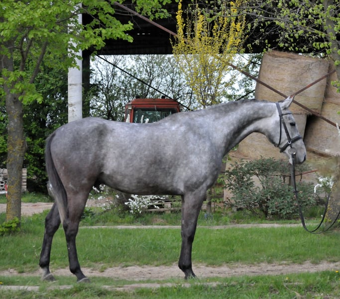 Jeune cheval prometteur, prêt à être monté immédiatement.