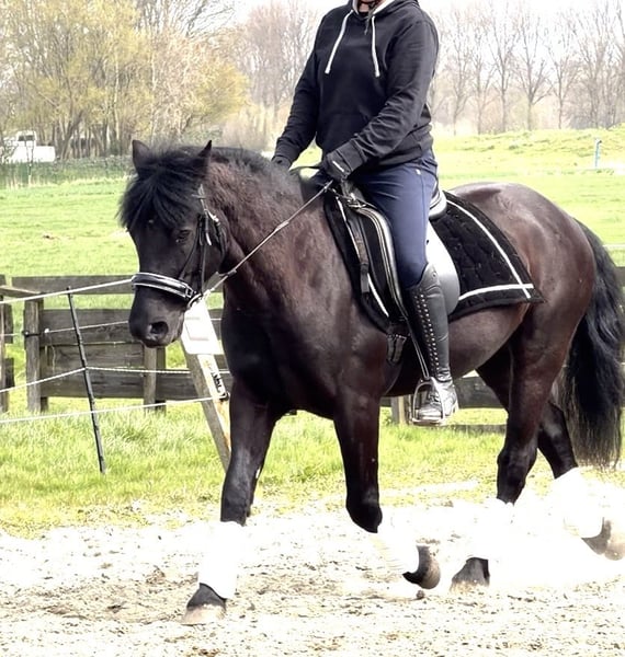 🖤 Prachtige zwarte D pony met veel behang en zeker de looks 🖤 (Graag de advertentie goed lezen) KASZINO: • D-pony (± 143 cm) • 6 jaar • Ruin • Geboren op 15-04-2019 Hij is een mega mooie verschijning ! Kaszino is een ideale pony voor ook kleine volwassenen. Hij is niet heet, maar zeker ook geen slome pony, precies de juiste balans. Heeft wel kopje erop zitten om je even uit te proberen. Blijft wel eerlijk! De eerste paar dagen dat hij hier was , keek hij lelijk maar hij doet niks, ook was hij wat aan de magere kant en je merkte dat hij weinig eten gekregen had waardoor hij uitgehongerd was en wel hierop reageerde met het voeren. Nou merken wij met de dagen verder dat het steeds minder word nu hij bij komt. Maar dit wil ik wel erbij melden , hij is echt heel lief met alles maar moet geen onzekere persoon om hem heen hebben. Hij bloeit steeds meer en meer op , geef hem de tijd en dan zal dit echt een mega leuke pony worden die dan wacht op een dikke knuffel! Daarom gaat Kaszino naar iemand toe die ervaring hiermee heeft en hem zal begrijpen, al met al hij is absoluut niet vals!! maar hij moet echt even bijkomen en zeker je leren kennen dan zal dit goed komen!* Geschikt voor kinderen vanaf 13 jaar, die wel kunnen aanpakken met het rijden. Ruiter die erop zit is 170 cm Hij is buiten licht ingereden ( dus alles van de bak moet hij nog leren) Dit pakt hij enorm snel op, wij zijn hier nu mee bezig. Kaszino is bekend met het longeren. Dit heeft hij bij ons ookal opgepakt. Karakter & omgang: ✔️ Lief en rustig ✔️ Geduldig en nuchter ✔️ Houdt van aandacht en knuffelen ✔️ kijkt eerst kat uit de boom ✔️ test je uit , en zoekt duidelijkheid van ruiter Hij staat netjes stil bij het poetsen, loopt braaf mee aan de hand en geeft keurig zijn benen. Hij verdiend een super huisje met heel veel liefde, denk jij dat jij hem dit kan geven ? Stuur mij gerust dan een berichtje. Rijden & mogelijkheden: Hij beschikt over drie zeer nette gangen en is een leuke allrounder. Geschikt voor o.a.: • Dressuur • Eventing • Buitenritten (bos/strand) • voor de kar zal hij ook gaaf zijn ( wij vermoeden dat hij dit gedaan heeft , maar dat is gissen) Door zijn uitstraling en mooie correcte beweging is hij een echte blikvanger 😍 ( hij is echt onwijs knap in het echt)!!!! Extra informatie: • Bekend met zadel (video’s aanwezig) • 24-03: ontwormd (Equest Pramox) • 26-03: hoefsmid geweest • geen stamboom alleen paspoort Locatie : Zwartewaal ( ZUID-HOLLAND) Voor filmpjes aanvraag : +31619034989