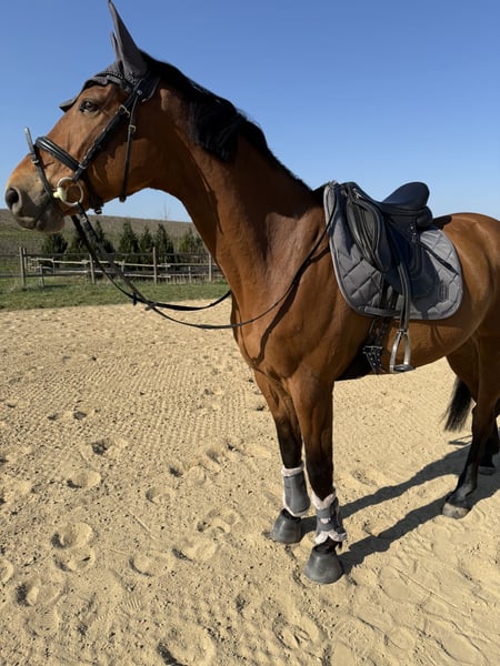 Due to a personal change, I am unfortunately no longer able to do justice to my 6-year-old gelding, which is why I have made the very difficult decision—if everything fits—to place him in the best possible hands for his sake. He is a wonderful horse and enjoys being worked with. Versatile training (dressage, jumping, trail riding) would be ideal. He is familiar with both box stall and pasture turnout. He will not be sold solely for box stall housing, as he becomes bored (he does not crib or weave). He would prefer to be outdoors most of the time. He is well-behaved during vet visits, farrier care, and loads onto the trailer without issues. He is easy to care for in terms of feeding and cohabitation with other horses. He gets along well with mares and geldings. I will only place him if everything feels right and he is going into caring, supportive hands. Otherwise, he should simply enjoy being a horse for the next few years.