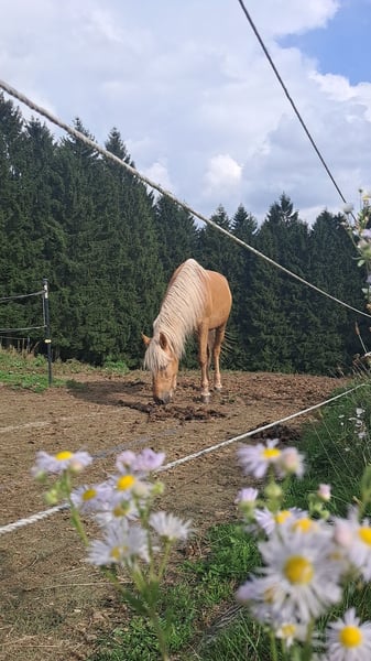 Hallo, ich bin Aurelio. 🐴 Sieben Jahre alt, ein bisschen ungarisches Feuer im Herzen und angeblich sehe ich aus wie ein Haflinger. Aber psst… eigentlich bin ich ein Warmblut. Ich finde, ich habe meinen ganz eigenen Stil. Als ich hierherkam, war ich zuerst etwas vorsichtig. Die Welt war groß, neu und irgendwie ein bisschen unheimlich. Ich habe alles lieber erst aus der Ferne beobachtet. Aber weißt du was? Es hat gar nicht lange gedauert, bis ich gemerkt habe, dass ich hier Menschen habe, denen ich vertrauen kann. Heute laufe ich meinen Menschen manchmal auf Schritt und Tritt hinterher, einfach weil ich gern dabei bin. Man weiß ja nie, was Spannendes passiert. Und spannend finde ich eigentlich fast alles. Ich lerne schnell, probiere gern neue Dinge aus und schaue mir die Welt mit großen Augen an. Und ja… mein Mensch sagt manchmal, ich bin auch ein kleiner Stritzi. Vielleicht hat er recht. Ich teste gern meine Grenzen, schaue, was ich mir erlauben kann, und habe immer ein kleines Funkeln in den Augen. Früher fand ich den Hufschmied ein bisschen seltsam. Dieses Klopfen, dieses Raspeln… Aber inzwischen? Ehrlich gesagt glaube ich, wir sind mittlerweile ziemlich gute Freunde geworden. Ich halte brav still und er sagt immer nette Dinge über mich. Und über eine Sache müssen wir gar nicht diskutieren: Futter. Dazu sage ich natürlich niemals nein. Wirklich niemals. In der Herde habe ich übrigens auch meinen Platz gefunden. Bei den Stuten gebe ich gern den kleinen Macho. Nicht dass ich unbedingt der Chef sein müsste das ist mir ehrlich gesagt zu anstrengend. Aber ganz unten in der Rangordnung? Dafür bin ich dann doch ein bisschen zu stolz. Am liebsten stehe ich einfach da, mit wehender Mähne, beobachte alles ganz genau und denke mir: Das Leben ist eigentlich ziemlich schön. Und wenn du mich suchst – keine Sorge. Ich bin wahrscheinlich direkt hinter dir. 🐎