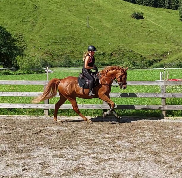 Monte - ambitioniertes Freizeitpferd mit Luft nach oben! Monte ist ein sehr schöner, im quadrat stehender, 9 - jähriger Fuchswallach. Er ist leichtrittig, fein an den Hilfen und hat gute Grundgangarten. Bei neuen Lektionen sowie bei der Bodenarbeit ist Monte sehr lernwillig und möchte alles richtig machen. Beim Springen zeigt er sich sehr willig und hat viel Go zum Sprung. Deswegen braucht er in dieser Disziplin einen Reiter der schon mehr Erfahrung mitbringt. Er steht in einen Offenstall, kennt aber auch Boxenhaltung. Er ist schmiede - und verladefromm. Momentan ist Monte barhuf, hatte aber schon auf allen vieren Eisen drauf. Sein Charakter ist verschmust und liebevoll. Bei unbekannten Sachen braucht er seine Zeit um sich es anzuschauen, vertraut aber auf den Menschen. In den richtigen Händen, sehe ich Potenzial für Starts auf Turnieren. In Springen sowie in der Dressur. Monte steht zum Verkauf da ich leider zu wenig Zeit habe. Er aber sehr viel Potenzial für mehr hat, dass ich nicht verschwenden möchte.