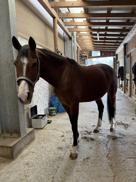 Con mucho pesar, debo vender a mi yegua de 10 años debido a la falta de tiempo. No solo es hermosa, sino que también es un caballo realmente genial en el trato. Es una montura perfecta para el ocio; el trabajo en la pista o en la arena, así como pequeños saltos, no representan ningún problema para ella. Una vez que ha establecido confianza con su jinete, se puede hacer prácticamente de todo con ella. No es un caballo para principiantes, ya que a veces puede ser muy sensible y tiene mucha energía. En el campo, en grupo, es muy tranquila; sola, todavía algo nerviosa, pero igualmente tranquila. Debido a úlceras estomacales en el pasado, se vende por debajo del valor de mercado, pero con un poco de manejo, ya no presenta casi ningún problema. Se puede adquirir también el equipo.
