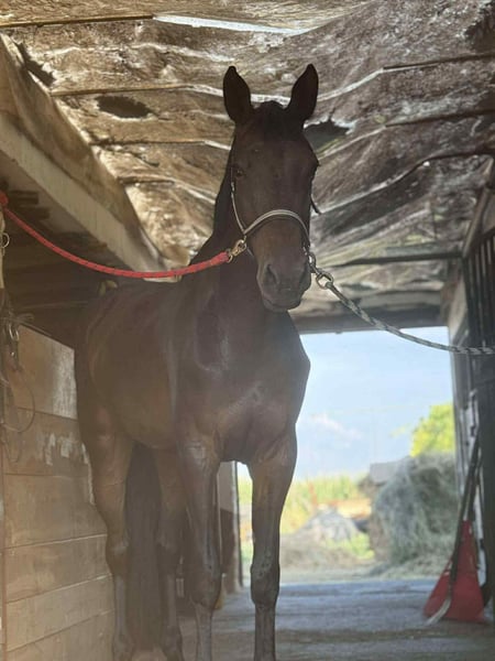Elegant Hungarian Sport Horse mare, born in 2021, offering exceptional potential for the ambitious rider. Standing at a impressive 178 cm, this well-built mare boasts a refined brown coat and a noble presence. She has been carefully trained in jumping, demonstrating natural talent and a good technique over fences. Her balanced conformation and athletic build make her suitable for a variety of equestrian disciplines, with a particular focus on show jumping. Well-ridden and responsive, she exhibits a willing attitude and a promising future in the sport. An excellent choice for riders seeking a talented and versatile mare with a strong pedigree and a bright competitive outlook.