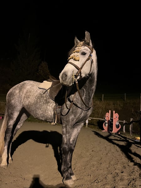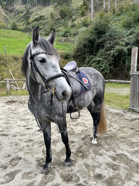 Verkaufe Ungarisches Reitpony – Stute, geb. 2020 Zum Verkauf steht eine elegante und talentierte ungarische Sportstute, geboren im Jahr 2020. Die schöne Apfelschimmelstute besticht durch ihre ansprechende Erscheinung und ihr vielversprechendes Springvermögen. Merkmale: - Rasse: Ungarisches Sportpferd - Geschlecht: Stute - Geburtsjahr: 2020 - Farbe: Apfelschimmel - Stockmaß: ca. 147 cm - Einsatzgebiet: Springen Diese junge Stute vereint Leistungsbereitschaft, Charme und Vielseitigkeit. Sie ist gut ausgebildet, lernwillig und eignet sich sowohl für den Turniersport als auch für ambitionierten Freizeitreiten. Sie arbeitet bei mir in allen Disziplinen sowohl beim Fahren, Dressurarbeit nach klassischen Grundsätzen, Springen, Reitpädagogik, geht sowohl alleine als auch in der Gruppe brav ins Gelände, ist dabei stehts bemüht und will gefallen🦄🫶🏼 Bei Interesse oder weiteren Fragen stehe ich gerne zur Verfügung. Vereinbaren Sie einen Termin für eine Besichtigung und eine Proberunde!