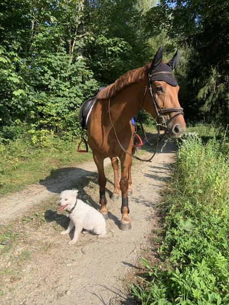Cherry ist eine 9 Jährige, 163 große ungarische Sportpferde-Stute, die nicht nur durch ihre brave und gelassene Art im Umgang, sondern auch durch ihre unglaubliche Arbeitseinstellung überzeugt. Cherry kam zweijährig zu mir, wuchs auf einer riesen Weide auf, bekam dreijährig ein Fohlen und startete dann schonend in ihr Reitpferdedasein. Von Anfang an konnte Sie im Pacour durch ihre Schnelligkeit, Wendigkeit und Rittigkeit nicht nur unzählige Plazierungen sammeln, sondern auch zahlreiche Siege und Titel mit nachhause nehmen. Die Dressur ist nicht ihr Freund, trotzdem ist sie ein vielversprechender und zuverlässiger Partner in der Vielseitigkeit. Cherry ist ein absoluter Allrounder, ging schon in der Kutsche, ausgedehnte Ausritte, Schwimmen, Jagdritte, Rodeln- sie ist überall motiviert dabei! Generell eine Robuste Stute die für motivierte Junioren perfekt geeignet wäre! Schmiede und Verladefromm, kennt LKW, kein Steiger, Buckler, Treter oder Angsthase! Wegen Rückenbefund der sie aber überhaupt nicht beeinflusst weit unter Wert abzugeben!