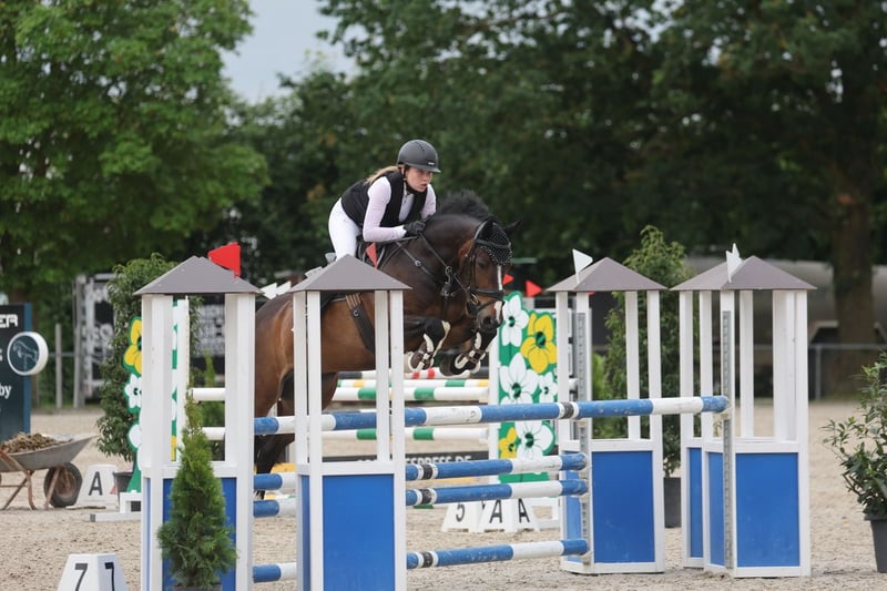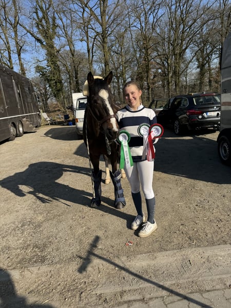 Da meine Ponyzeit nach diesem Jahr endet, suche ich für Mr. Magic Jimmy B ein neues Zuhause. Magic ist ein 10-jähriges irisches Sportpony (148 cm eingemessen), das besonders im Springen begeistert. Er hat Siege und Platzierungen bis L-Springen gegen Großpferde gesammelt und dort regelmäßig tolle Noten bis in den 8er-Bereich bekommen. Erste Starts in M-Springen hat er bereits absolviert. Dressur beherrscht er bis Klasse L, aber am glücklichsten ist er eindeutig im Parcours. Ich kenne Magic schon seit 2020 und durfte ihn regelmäßig reiten. Im September 2023 haben wir ihn schließlich gekauft. Gemeinsam haben wir im Springreiterwettbewerb angefangen und uns bis in die Klasse M hochgearbeitet. Magic gibt immer sein Bestes und ist dabei ein verlässlicher Partner, der Fehler verzeiht und mir viel Sicherheit vermittelt hat. Im täglichen Umgang ist er total unkompliziert: brav beim Tierarzt, Hufschmied und Zahnarzt, verladefromm und problemlos im Hänger oder Transporter. Gesundheitlich ist er topfit, eine Ankaufsuntersuchung mit Röntgenbildern von 2023 liegt vor. Alle Impfungen nach LPO, inklusive Herpes, sind selbstverständlich gemacht. Ich wünsche mir für Magic ein ambitioniertes Kind im E/A-Bereich, das ein ehrliches und leistungsbereites Sportpony sucht, mit dem man gemeinsam wachsen kann – so wie ich es durfte.