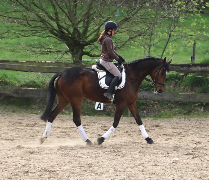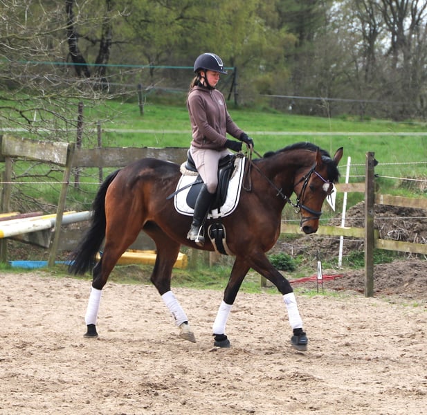In vendita un castrone irlandese di 10 anni, alto 1,65 m. Darcy Song è dotato di tre andature di base gradevoli, oltre a un carattere calmo ed equilibrato. Darcy Song è un cavallo affidabile, che va volentieri in passeggiata e si comporta bene anche in arena. Se cercate un cavallo da hobby e per il tempo libero, equilibrato e adatto a tutta la famiglia, vi invitiamo a considerare Darcy Song. Per le prove di monta dei nostri cavalli in vendita, chiediamo una quota di 20 €. Vi chiediamo di comprendere che è già stata effettuata una visita clinica d'acquisto, che risulta in ordine. Attualmente, il cavallo vive con noi a Ofenstahl 24 ore su 24, 7 giorni su 7, in un branco misto.