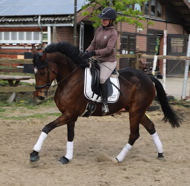 Te koop staat hier een 10 jaar oude Ierse ruin met een hoogte van 1,65 m. Darcy Song beschikt over drie aansprekende basisgangen en heeft een rustige en evenwichtige aard. Darcy Song is een brave kerel, gaat graag het buitengebied in en doet het goed op de piste. Bent u op zoek naar een evenwichtig recreatie- en vrijetijdspaard voor het hele gezin? Neem dan gerust een kijkje bij Darcy Song. Voor het voorstellen en proefrijden van onze verkooppaarden rekenen wij een basisvergoeding van €20. Wij vragen uw begrip dat een klinisch aankooponderzoek al is uitgevoerd en in orde bevonden. Hij woont bij ons in de Ovenschot 24/7 in een gemengde kudde.