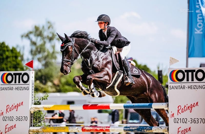 Questo castrone colpisce già al primo sguardo: slanciato, moderno, con un portamento potente e un apparato locomotore che non lascia nulla a desiderare. Un atleta snello che combina ritmo, flessibilità e ampiezza di movimento in salto in una forma rara da vedere. Ha ottenuto successi fino a 1,30 m di salto e è pronto all’uso per circuiti internazionali e compiti più impegnativi. Suo fratello già gareggia con successo a 1,45 m negli Stati Uniti.