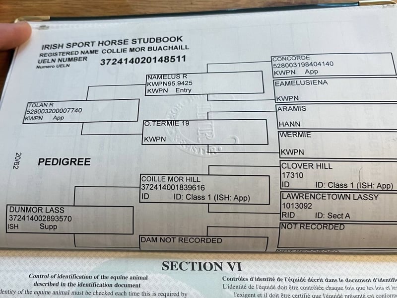 Ce hongre attire immédiatement l'attention : il est grand, moderne, doté d’un physique puissant et d’un système locomoteur qui ne laisse rien à désirer. Un athlète robuste qui allie rythme, souplesse et extension au saut dans une harmonie rarement vue. Réussi jusqu’à 1,30 m en saut d’obstacles et prêt à l’emploi pour des compétitions internationales et des parcours de grande envergure. Son frère participe déjà avec succès à des concours à 1,45 m en Amérique.