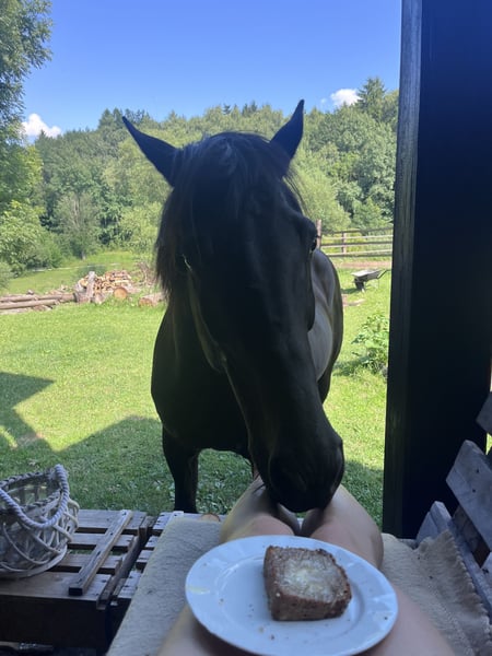 Szukam dla mojego kochanego wałacha Vikrama „Viky“ domu, w którym będzie mógł być otoczony troskliwą opieką i dzięki swojej serdecznej naturze przynosić radość osobie, która go pokocha. Nie mogę zapewnić mu w naszym stajni optymalnych warunków, których potrzebuje, dlatego poszukuję dla niego nowego domu. Chętnie opowiem więcej osobiście. Viky jest koniem typu gaited, czyli potrafi töltować. Nie znam jego rasy, pochodzi z Forgotten Horses Farm w Irlandii i ma standardowy paszport equiden. Jego charakter jest po prostu anielski. Sam wchodzi do przyczepy, jest bardzo ostrożny wobec człowieka i niezwykle wrażliwy. Jest bardzo odważny – miałam okazję z nim wykonywać treningi z ogniem oraz w zeszłe lato jeździłam na nim w turnieju rycerskim. Niestety, jest pewne „ale”. Jest do jazdy, jednak od czasu do czasu ma problemy z tylną częścią ciała. Weterynarz nic nie wykazał. Przy odpowiednim wsparciu, takim jak wzmacnianie mięśni i umiarkowana aktywność, radzi sobie dobrze. Przypuszczam, że w Irlandii był dość intensywnie wykorzystywany jako koń sportowy (stąd trafił do farmy ochrony koni). Problemy objawiają się sztywnością i nieczystością ruchów. Chętnie opowiem i wyjaśnię więcej osobiście. W stadzie jest niższy rangą i zazwyczaj raczej trzyma się na uboczu. Bez problemu radzi sobie podczas spacerów i jazdy solo. Viky to naprawdę wspaniały towarzysz dla kogoś, kto lubi pracę od ziemi i ceni sobie spacery. Przede wszystkim na rekreacji. Z ziemi mógłbym go również bardzo dobrze wyobrazić jako konia terapeutycznego, ponieważ jest bardzo ostrożny i grzeczny. Marzę o tym, aby znalazł kochający dom, w którym będzie mógł się osiedlić i prowadzić spokojne życie. Nie będzie oddany handlarzom ani do szkół jeździeckich. Preferowany byłby stajenny system 12/12 lub paddock. Powinien mieć możliwość ruchu. Obecnie znajduje się w Czechach. Oczywiście można porozmawiać o transporcie. Jeśli chodzi o rasę: zaznaczyłam opcję „inne rasy”. Irish Sporthorse to tylko przypuszczenie. W paszporcie nic nie jest wpisane.