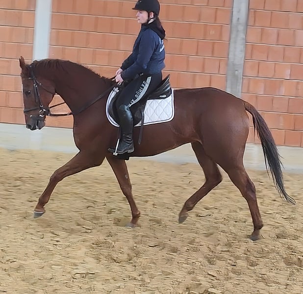 Beautiful approximately 12-year-old dark chestnut gelding, around 172 cm tall, with a neck that more closely resembles that of a stallion than a gelding. Very easy to handle and establish in the stable. A horse that can be ridden effortlessly with a soft hand. Very comfortable to sit on (like a sofa). At 12 years old, in the prime of life. A real eye-catcher that not everyone in the stable has. Price takes precedence here, so he is offered at a very affordable price. If desired, he can be sold with a complete set of new accessories for a small additional fee. Transport can be arranged. A veterinary pre-purchase exam, including X-rays and blood tests, can be performed by your own veterinarian if desired. We look forward to your call at 01774289729. Written inquiries will not be answered. Calls from blocked numbers will be automatically rejected.
