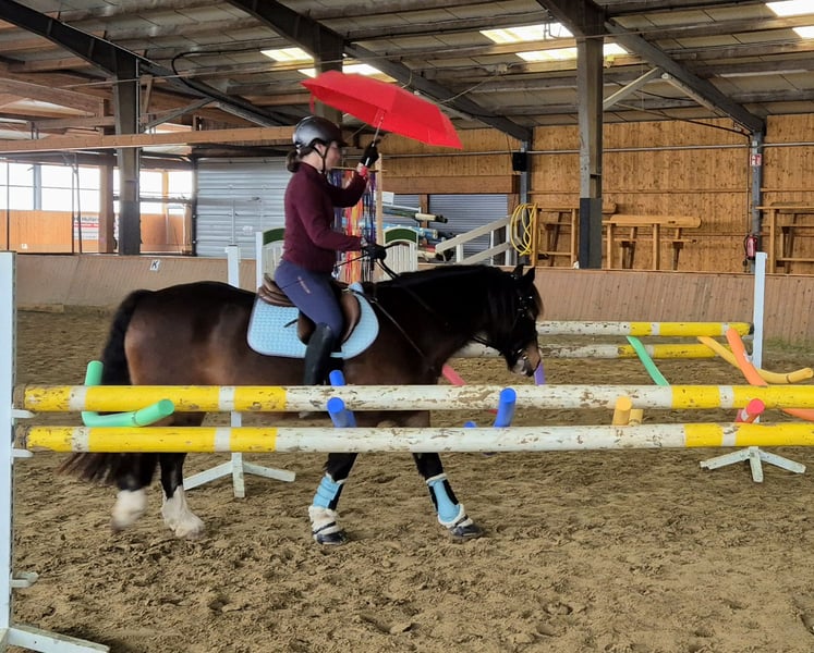 Nach 3 gemeinsamen Jahren muss ich mir eingestehen, dass diese Kombination leider nicht richtig passt. Daher biete ich schweren Herzens meinen vielseitigen Ponywallach zum Verkauf an. Benji ist absolut unverbraucht und wurde sehr abwechslungsreich geritten. Er macht wirklich alles mit: Englisch, Western, mit/ohne Gebiss, ohne Sattel, Bodenarbeit etc ein echter Allrounder. Am liebsten geht er allerdings ins Gelände. Gruppe, zu zweit, mit Handpferd, alleine! Da er eine eigene Meinung hat und bei uns ranghoch ist, eignet er sich besser für fortgeschrittene Reiter. Als reines Kinderpony sehe ich ihn nicht, obwohl er vom Grundsatz her sehr brav ist. Kein Steigen oder Durchgehen! Er ist 2013 geboren, hat einen irischen Pass und ein Stockmaß von 140 cm, wirkt aber größer. Die Reiterin auf den Bildern ist knapp 1,70 m groß. Top gesund, barhuf, geimpft.
