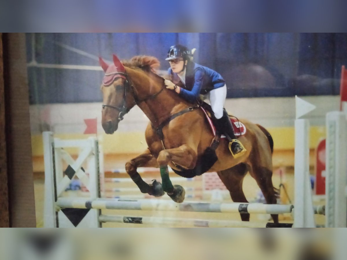 Irish Hunter gelding, basic training and competition experience up to 110 cm. Calm, healthy, 17 years old, with us for 10 years. Slightly underused in competitions. Very balanced and well-behaved.