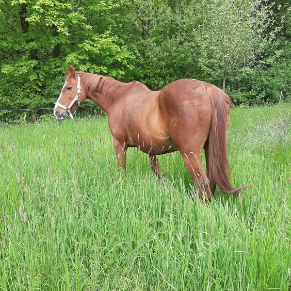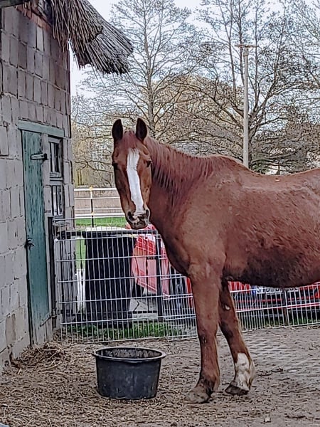 After a long search, I am looking for a new, suitable home for my gelding. Due to health reasons, he can unfortunately only be ridden partially and is therefore being offered as a companion horse (only with a protection contract). He is a calm horse who maintains his rhythm, well-behaved in handling, and loved by the kids during equine-assisted learning sessions. He enjoys groundwork and walks, during which he is attentive and motivated. Currently, he is barefoot, vaccinated, dewormed, and still living in a herd at our open stable. He is familiar with both pasture and box stall housing. He is well-behaved within the herd but should be kept in a herd of geldings. He will soon move to an open stable in Lübz, as we are relocating our work abroad. At the moment, he is still with us in Techentin. Since he means a lot to us, we are looking for a suitable final home. Accessories and some bags of hay cubes are included. He has robust health and loves being outside in the pasture with his friends. It is important to me that he receives enough attention in the future, as much as possible. Additionally, I am specifically seeking a place that meets his needs. If you want to give a special horse a loving home and have the necessary experience and time, I look forward to hearing from you.