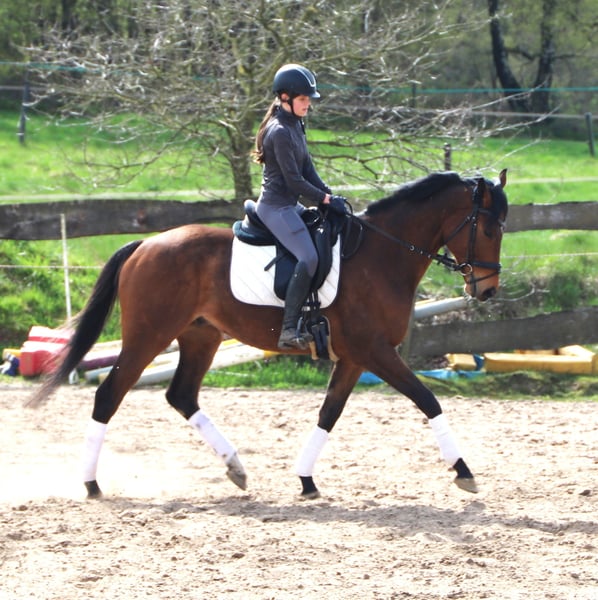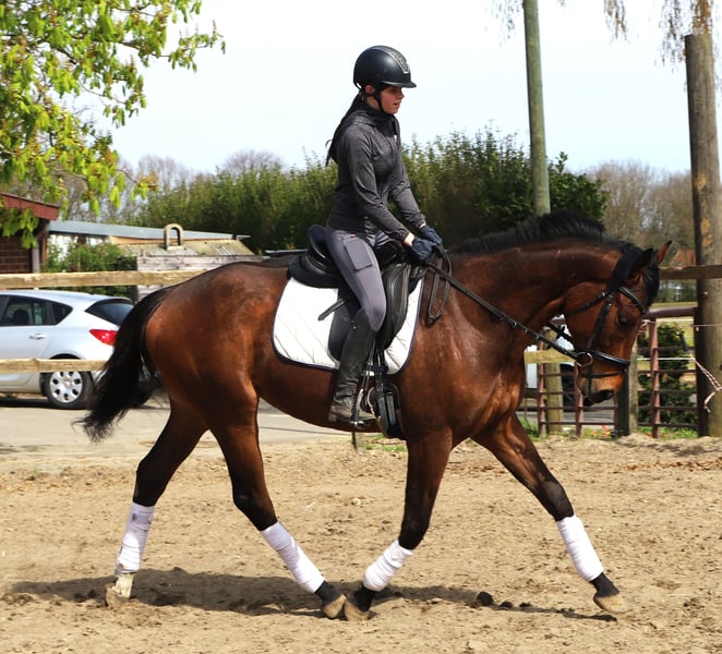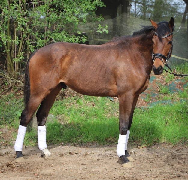 For sale is a four-year-old Irish Sport Horse gelding standing 16.3 hh. Show Your Working has three very expressive basic gaits, and age-appropriate, he is simply well-behaved, honest, and balanced. He enjoys hacking out and has already been introduced to small jumps. He is now waiting for his new family. For the pre-purchase examination, our sale horses require a basic fee of €20. We kindly ask for your understanding. A clinical pre-purchase exam has already been carried out and is clear. Show Your Working lives with us in an open stable in a mixed herd and is a gelding.