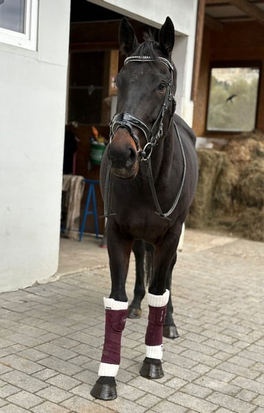 Name: Archie Geschlecht: Wallach Geboren: 2020 in Irland Stockmaß: ca. 160 cm Typ: im Vollblut-Typ stehend Archie ist ein bildschöner, edler Rappe mit tollem Ausdruck und einem absolut liebenswerten Charakter. Er zeigt sich stets aufmerksam, aber nicht schreckhaft, und überzeugt mit seiner ausgeglichenen, menschenbezogenen Art. Auch für schwächere oder weniger erfahrene Reiter ist er ein angenehmer und verlässlicher Partner. Im Dressurtraining befindet sich Archie auf einem schönen A-Niveau und besticht durch leichte Rittigkeit und harmonische Bewegungsabläufe. Mit weiterer Förderung ist er sicher auch für den Amateursport bestens geeignet. Er ist vielseitig veranlagt, brav im Gelände und hat bereits an Jagdritten in Irland teilgenommen – stets gelassen und motiviert. Archie ist gesund, barhuf, hat keine Unarten und wird nur in beste Hände abgegeben. Komplettes Zubehör kann bei Interesse gegen Aufpreis miterworben werden. Ein Besichtigungstermin kann gerne jederzeit nach Absprache stattfinden und ein Transport kann organisiert werden!