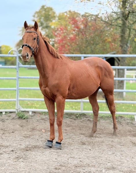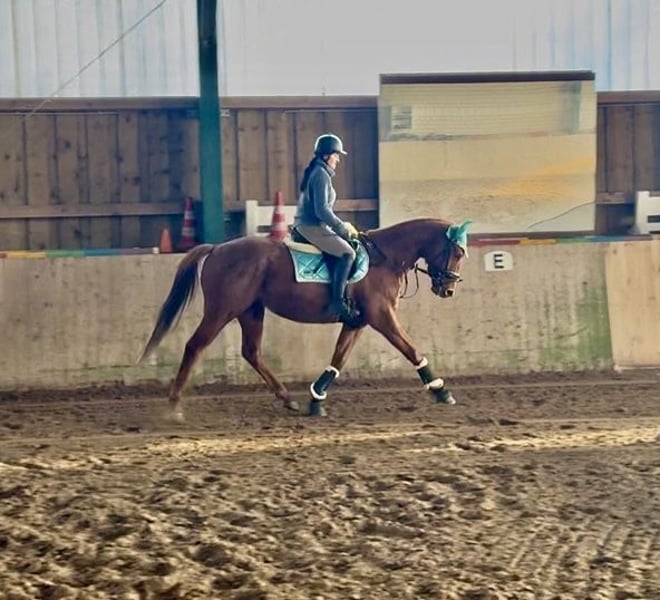 Schweren Herzens suche ich für meinen besonderen Herzenswallach Jacky ein liebevolles neues Zuhause. Leider aus Zeitmangel abzugeben . Jacky ist ein 4-jähriger Vollblut, irischer Sportpferd-Wallach, ca. 168 cm groß und ein wunderschöner Fuchs. Sein größter Schatz ist jedoch sein unbezahlbarer Charakter: Er möchte seinem Menschen gefallen, arbeitet motiviert mit und ist unglaublich lieb, sensibel und verschmust. Nähe und Vertrauen bedeuten ihm sehr viel. ✨ Ausbildung Bis Mitte 2025 Dressur E-A Niveau. Nach längerer krankheitsbedingter Pause befinden wir uns seit Dezember 2025 wieder/immer noch im Aufbau. Aktuell ist Wichtig: Muskelaufbau, Gleichgewicht usw. was aber schnell geht, da er das ja alles schon konnte. - Seit Januar 2026 wieder unter dem Sattel, problemlos. - Longiertraining ohne Schwierigkeiten, - lahmfrei in Schritt, Trab und Galopp Er kennt: longieren, ausritte (alleine so wie in einer großen Gruppe), springen,- Kinder, verschiedene Tiere, Traktoren, Busse usw. Ohne Probleme 🩺 Gesundheit Mitte 2025 Kniegelenksentzündung hinten (behandelt) sowie vorne Osteosynthese mit Zugschraube im Fesselgelenk. Aktuell lahmfrei, schmerzfrei und unauffällig im Training seit Dez. 2025. Laut Klinik sollte Springen vorerst nicht eingeplant werden. Seit Dezember 2025 haben wir das GO von der Klinik, Jacky wieder anzutrainieren. (Problemlos) ❤️ Wunschzuhause Offenstallhaltung, Wallachherde, ruhige und sensible Hand sowie Menschen, die ihn weiter fördern und ihm viel Liebe und Zeit schenken. Jacky baut eine enge Bindung zu seinem Menschen auf – deshalb ist mir ein passendes Zuhause wichtiger als alles andere. 📍 Weitere Infos, Videos oder Kennenlernen gerne auf Anfrage. 13159 Berlin Nur in allerbeste und erfahrene Hände abzugeben.