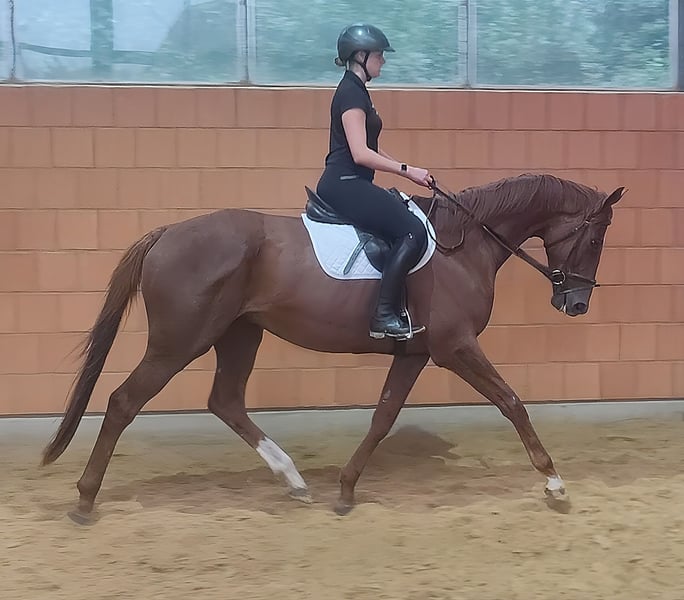 Whisper is a 5-year-old gelding, approximately 180 cm tall, with excellent character traits. He is very comfortable under saddle and extremely easy to position in the bridle. He has a pleasant, smooth movement, making him interesting for riders with back problems. Whisper is suitable for both competitive sports and for demanding leisure riders who want more than an average horse. He has been ridden without any issues by a young lady. He is familiar with the arena, outdoor arena, and trail riding. Due to his impressive size, he also accommodates taller riders well. If needed, he can be sold with complete new equipment for a small additional fee. Transport can be arranged. Trade-in is possible. A veterinary pre-purchase examination can also be conducted by your own veterinarian, including X-rays and blood tests. We look forward to your call at 015172059610. Written inquiries will not be answered. Calls from withheld numbers will be automatically rejected.