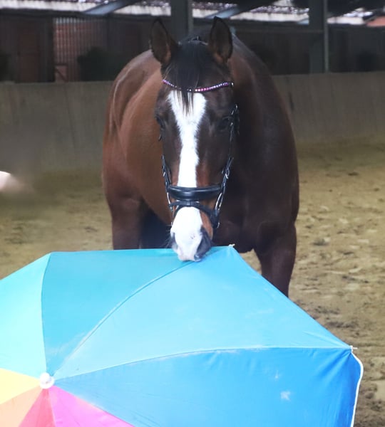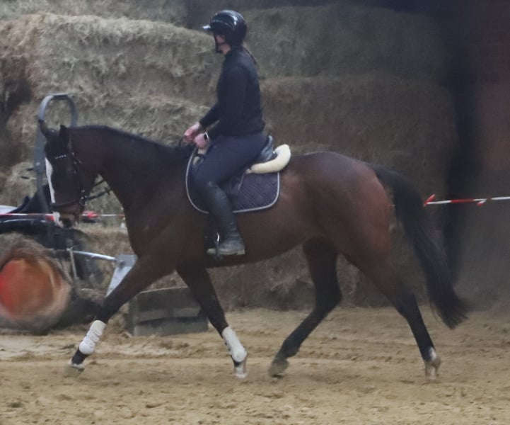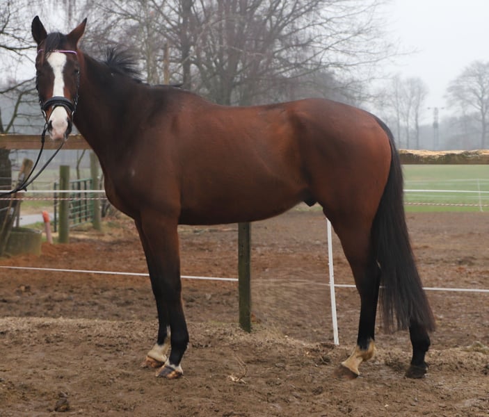 Winnie es un caballo de 7 años, de 1,62 m de altura, un potro muy bien equipado con tres buenas fases de movimiento y siempre tranquilo bajo la silla. Por ello, este maravilloso caballo es adecuado para toda la familia. Además, Winnie ya ha tenido experiencias en el campo. No presenta malos hábitos como cabalgar de manos ni rehusar, y también salta pequeños obstáculos. Actualmente, dispone de un informe clínico reciente. Para presentar a nuestros caballos, cobramos una tarifa de 20,00 €.