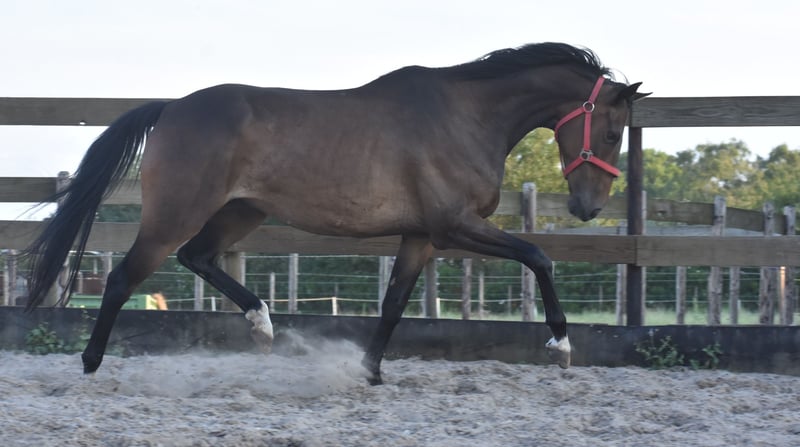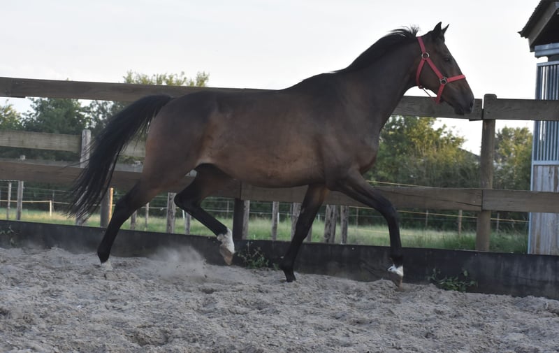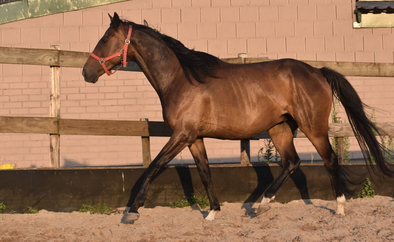 Lernen Sie Tex kennen, ein wunderschöner dunkelbrauner Wallach von ca. 1,63 m. Tex ist ein 7-jähriges Sportpferd und ein echter Charmeur im Umgang. Sobald er Sie ein wenig kennt, kommt er sofort auf Sie zugelaufen, um gestreichelt zu werden. Ein freundliches und soziales Wesen! Er kann sich gut bewegen und ist frei von Huf- und Stallgebrechen. Er steht täglich, 24/7, mit der Herde im Offenstall und zeigt sich dort sehr sozial. Derzeit verkaufen wir Tex aufgrund persönlicher Umstände als ungerittenes Pferd, hauptsächlich als Weidegefährte. Sind Sie auf der Suche nach einem freundlichen Pferd mit Potenzial und haben Erfahrung im Umgang mit grünen Pferden? Dann ist Tex definitiv einen Besuch wert! Preis: 2750 €