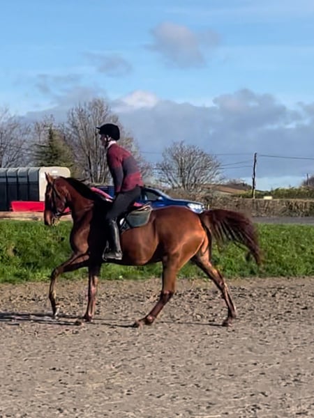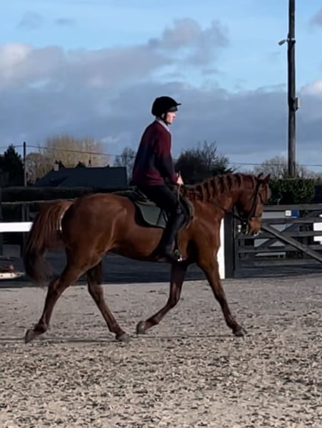 Halston Paul is ready for a career as an eventer. A strikingly well put together horse, at 172cm, he is a striking and elegant horse with good movement. His kind nature and willingness to please lends itself to his ride-ability. He loves his jumping and has a big heart. He has hunted with the Westmeath Foxhounds twice and been to agricultural shows, xc training and showjumping at the Mullingar Equestrian Centre. He is happy to hack alone and in company on roads and across fields with live stock. He is a quiet and relaxed companion in general eager to please. He has been brought on slowly due to his height. He has dealt with every challenge presented to him. His light and free movement, paired with a powerful jump, and a super attitude, trustworthy, fun and talented partner for any rider. He has been ridden by children. Halston stud (facebook/instagram), is a family owned stud in the heart of Ireland. Our philosophy is to rear horses and ponies in a heard on fertiliser free land, prioritising a happy life and natural development for horses. His sire Persiflage has evented at 4 star level himself and has produced progeny who compete to that standard currently, as well as Grand prix jumping ponies. They all stand out through their easy to do character, brave jumping and elegant consistent uphill paces.